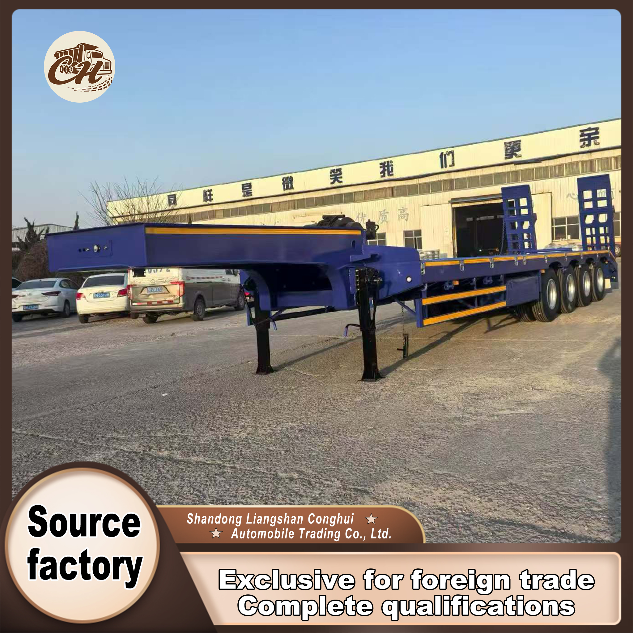 این تریلر تخت کم 4 محوره یک تریلر حمل و نقل بار سنگین است که برای تجهیزات مهندسی بزرگ و سنگین طراحی شده است. معمولاً توسط یک کامیون سنگین یدک می شود و به طور گسترده در سیستم حمل و نقل کامیون تجاری استفاده می شود و پشتیبانی پایدار و قابل اعتمادی را برای تحویل محموله های سنگین در مسافت های طولانی ارائه می دهد. ساختار سکوی پایین مرکز ثقل را پایین می آورد و از ثبات و ایمنی عالی در رانندگی در هنگام حمل ماشین آلات بزرگ اطمینان حاصل می کند.